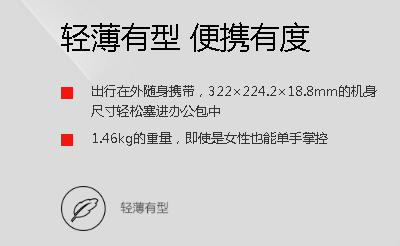 重量和尺寸 | 1.46kg,322x 224.2x18.8mm |